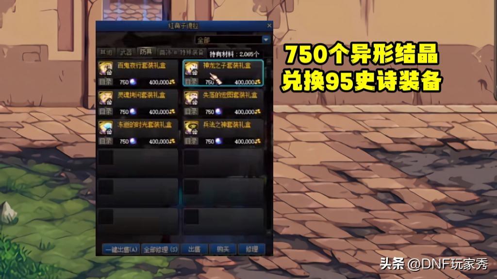 【1】在NPC“红鼻子”处,消耗“750个异形结晶+40万金币”,兑换一件“对应材质(布甲)的自选史诗礼盒”。
