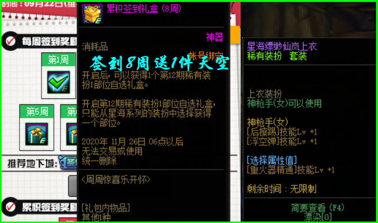 2、周签到活动中签到8周,即可免费领取一件天空,同样是12期的纯白天空。