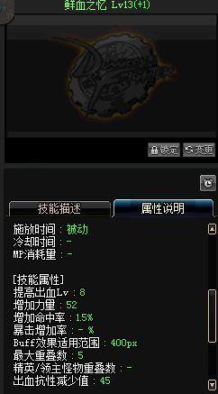鲜血之忆:满了可以增加出血等级、力量和的命中,属性加的挺全面,有伤害有命中,SP充裕,点满不需要多少SP,推荐满。