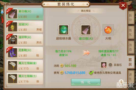 〖绿装备的改造〗绿装备改造时需要耗费金钱、2块五色灵石(晶石)。