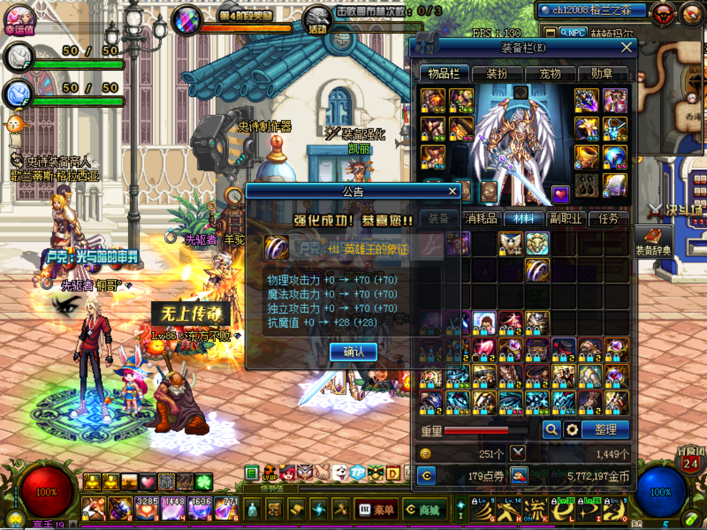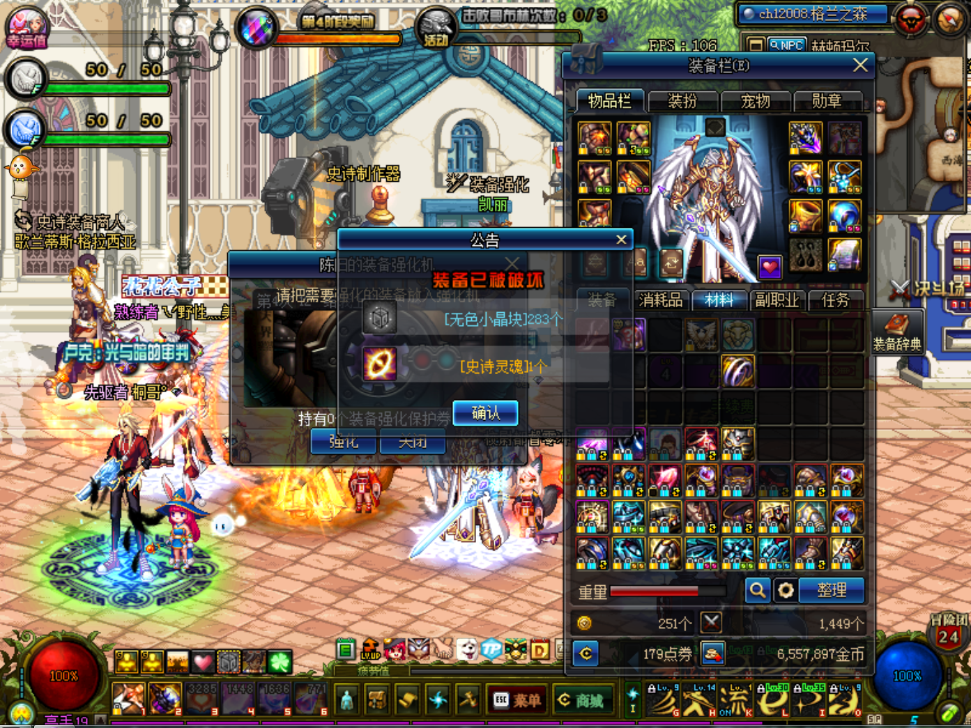装备如下:武器白12,收集箱,+7物攻勋章。肩红11、上衣、裤子、鞋、腰红10,3宝珠,2虫王,15力完美附魔。