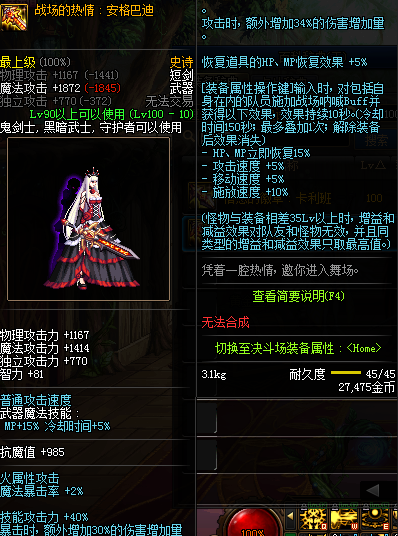 暗帝的武器推荐用短剑,当然有太刀的话也可以用太刀,短剑的话推荐战场的热情:安格巴迪