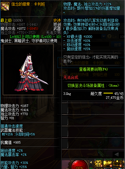 3、暗帝。 暗帝装备搭配,与剑宗和剑魔,都是相差不大,攻速出血流派。