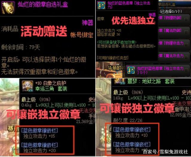 现在活动赠送的徽章礼盒特别多,因此我们可以优先选择“独立攻击”的蓝色徽章。