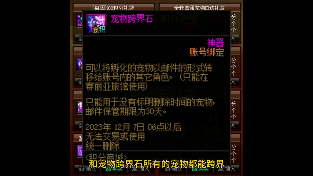 →第三,新积分商店上线,可以白嫖一个属性不错的永久宠物和宠物跨界石,所有的宠物都可以跨界。