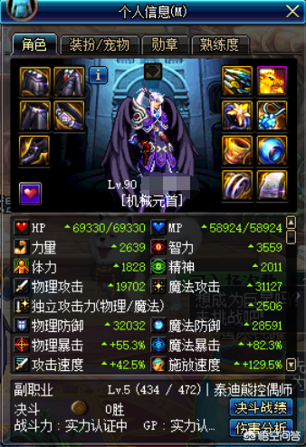 三件套百分比提升三攻10%,这个吃奶量要比时光套强,五件套提升10%的智力和25%的最终伤害,那么面板属性如图