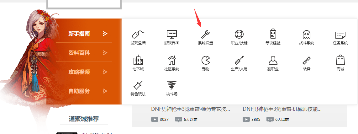 2.进入官方网站后,将页面拖至中间,即可看到新手指南,单击系统设置。