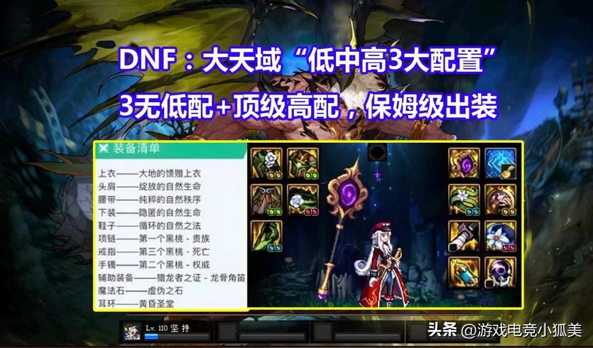 DNF:大天域“低中高3大配置”!3无低配+顶级高配,保姆级出装。这一次我们带来低配版、中配版和高配版的大天域搭配。无论是无称号、无光环、无宠物的三无小号,还是氪金齐全的大号,都是可以选择对号入座。