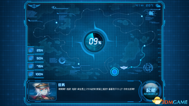 界面中间为航线推进进度,每次出航成功将会增加3%,用于兑换奖励