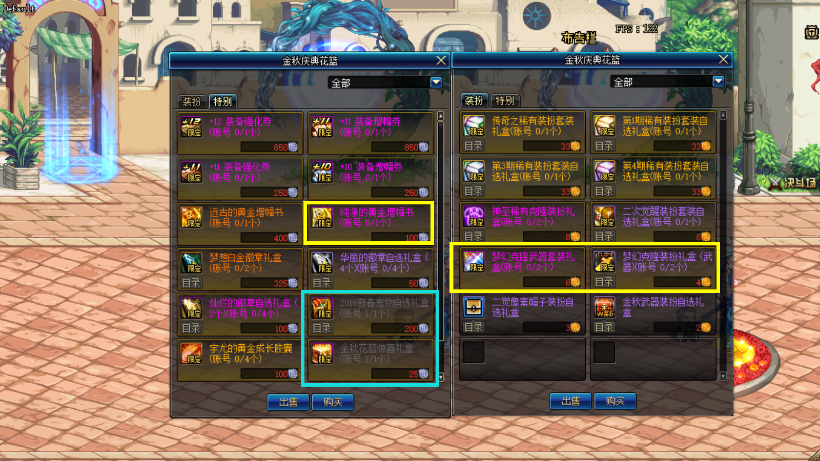 尤其是对于才把花篮凭证给浪费的玩家来说,这简直就是大坑啊!10.17花篮没有更新,以为不会改了,拿去换了普通武器装扮甚至二觉像素头,如今换梦幻武器又差几个!那么又得来2套金秋礼包。