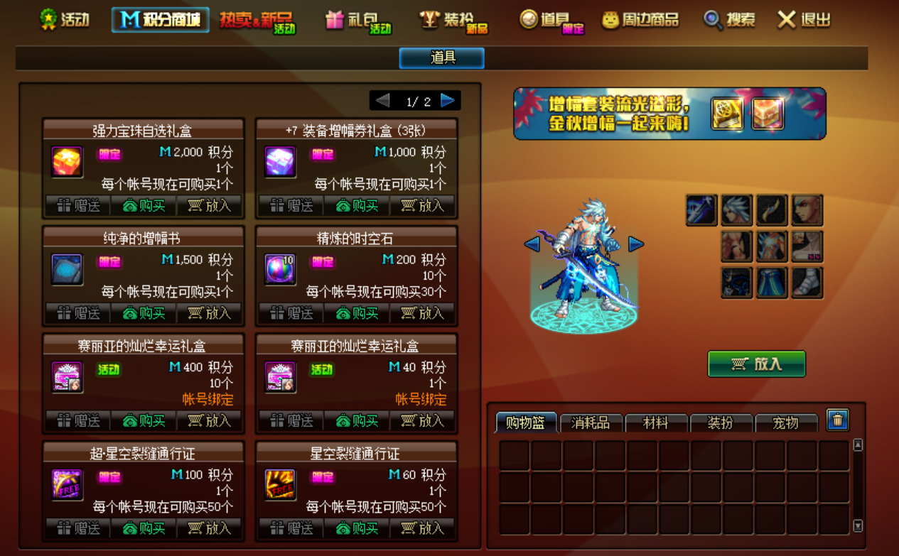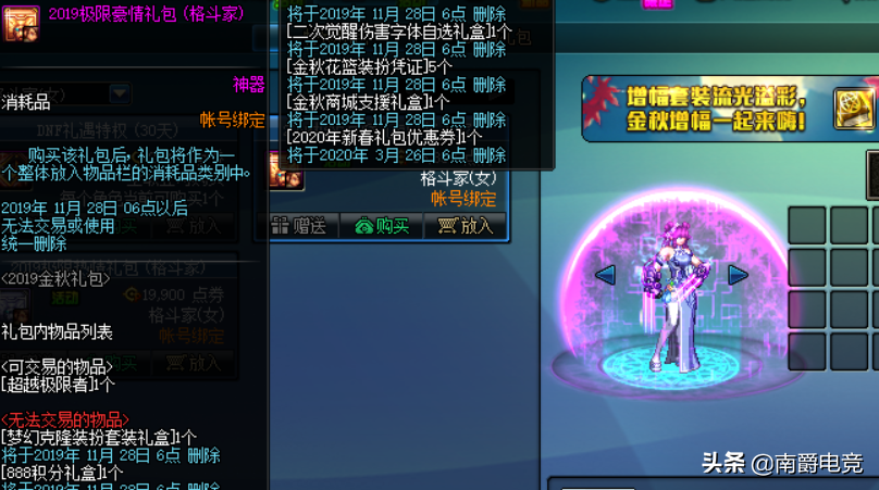对于账号中只玩一个角色的玩家来说,之前买了国庆套弄出自己想要的道具的话,这次的更新就无关痛痒了。没有什么值得购买的,游戏前段时间送的强打书已经够打造完一个角色的12件装备了。还想玩小号的玩家倒是一个不错的好时机,在如今可以一键满级、装备材料送不停的道具活动加持下,一个星期就进军普雷也不是什么难事。