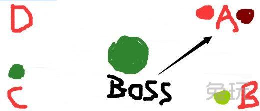 一开始BOSS会吐出一个臭球。去一个队友吃掉,吃掉臭球的队友走到ABCD还有中间的蓝圈中。速度要快