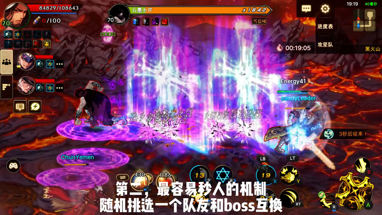 在火山二图中,要注意防止被连环拳锤死,还有一个退攻击,觉醒都可以打断。在大眼中,爱的抱抱一下不是满血基本秒,注意看大眼张开双臂时避开即可。在机制三中,画面会缩放,大眼会随机跳到一边,跑过去用破招打断即可。如果没有打断,可以在大眼身后躲避秒人冲撞。在三图中,要注意四个球出现后就可以打掉。最容易秒人的机制是随机选择一个队友和boss互换,攻击boss等于攻击队友,只有打掉队友的罩子才能解除。这是我的失误,不是故意的。在四图中,要注意没有秒人机制,只需要正常输出并打破招即可。