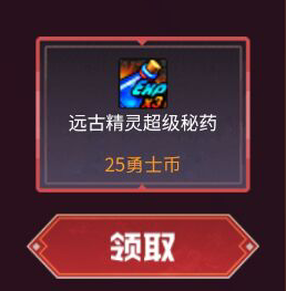 勇士们可以在充值返利和荣耀花园模块当中使用勇士币或者成就点兑换远古精灵的超级秘药,想要经验药的勇士们要记得每天派赛丽亚出去打工哦。