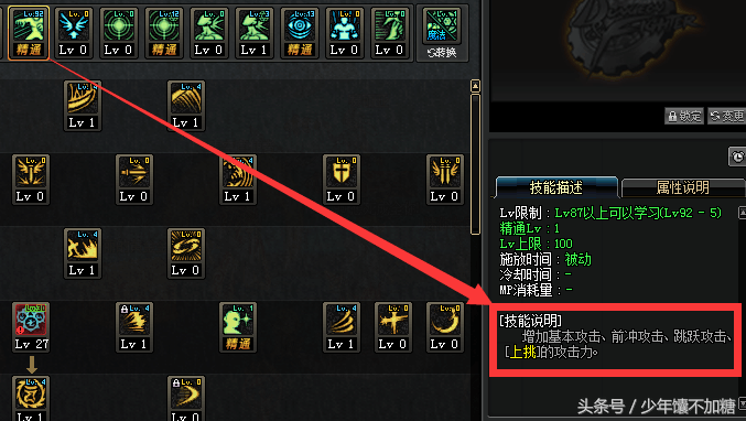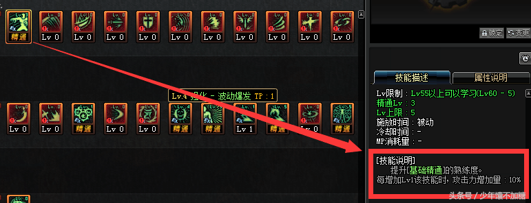 然而事实是,这两者之间没有任何关系,因为基础精通的TP点加的是基础精通中所描述的攻击力,并不是技能攻击力,当然某些技能除外,说白了,对于大多数职业来说,你点这个TP只不过是加了你“X”的伤害,也就是这个
