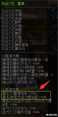 异界换装肯定是选择异界三期的厄运之忆6件套,力量加成30%,技能攻击力增加30%。