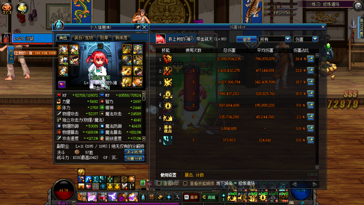 在改版后二觉的伤害反而降低到了8亿9684万,少了差不多5000万的伤害,图中大家也可以看到同样的换装和buff等级,改版后力量少了500点左右,所以导致了伤害有所降低。