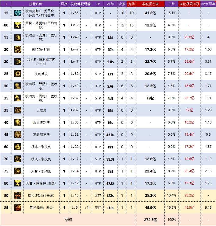 升级项链后,20秒总伤害是272.2亿,提升率是3.3%;