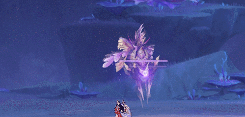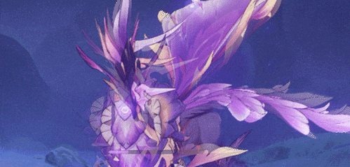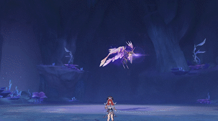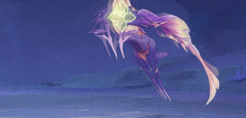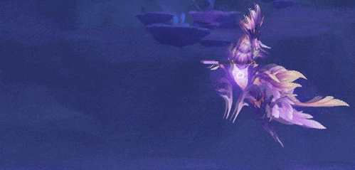 ●盛景游花:雷海马晃动羽翼,召出鱼群,数十条游鱼朝玩家方向飞来,鱼群的追踪性很强!游鱼造成带衰减的35%攻击力的雷元素伤害,打断玩家。●躲避: