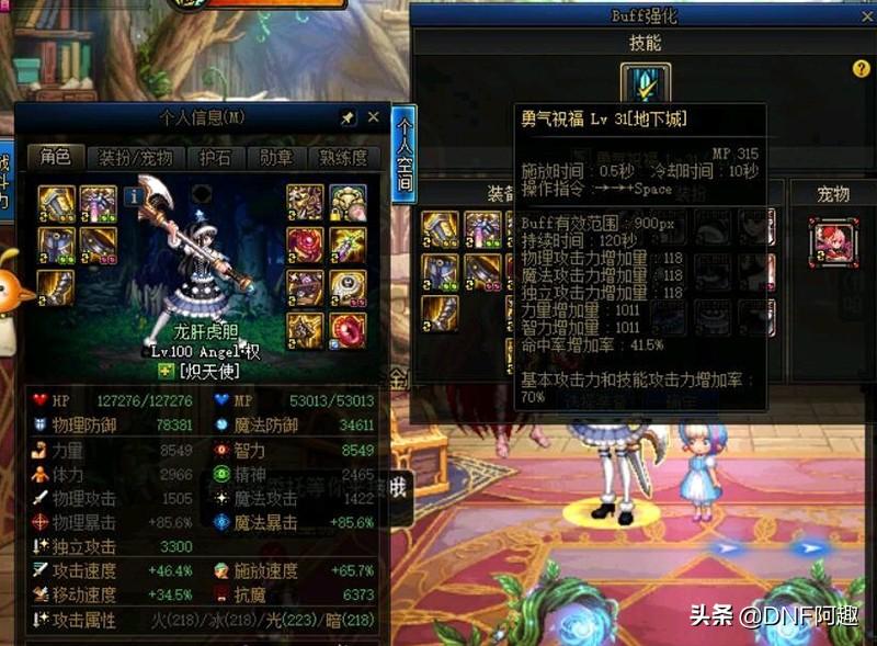 一定确认BUFF换装等级是满的,每少1级大约都会少0.5%的伤害。