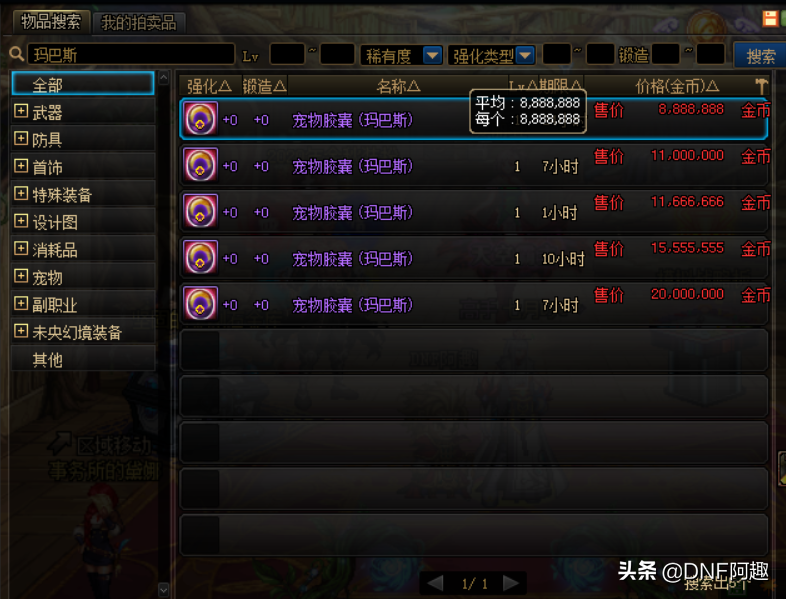 DNF:“神宠”玛巴斯跌了!拍卖行缩水一倍,换装能提升20%攻击力