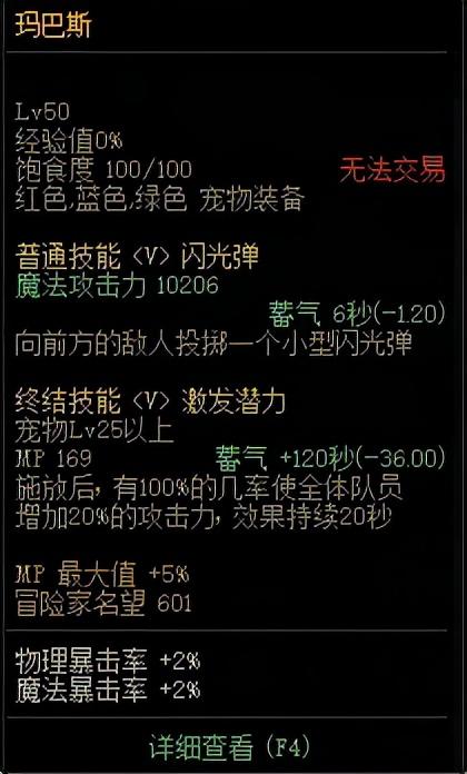 买了玛巴斯后,先去刷图攒经验值,升级至50级才行。话又说回来,玛巴斯宠物升级,需要的经验值多,得挑选推荐地下城“狂刷”。这么强的猴戏“神宠”,又是绝版道具,先前一直挺贵。版本末期来了,个别大区拍卖行,玛巴斯出现跌势,比原来缩水一倍。其实从本质上来说,背包有玛巴斯“神宠”的,竞速类和“桩王”专属。