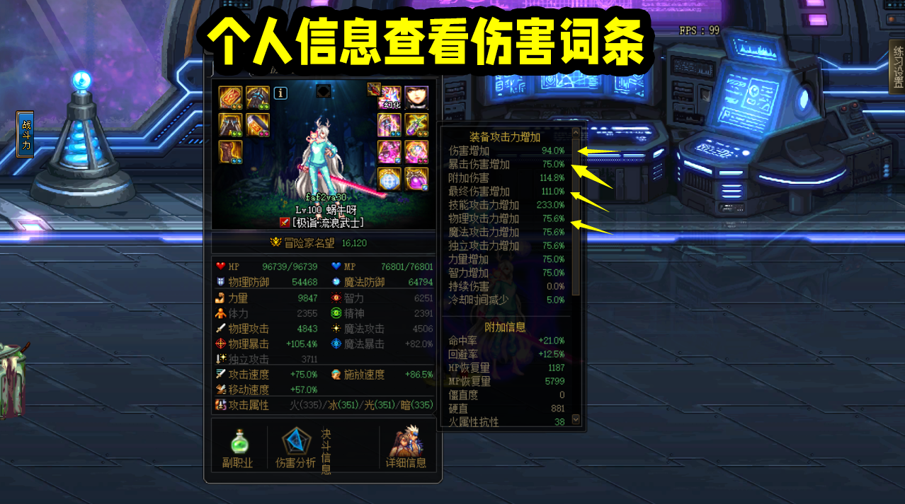 那么这称号该怎么选,这需要玩家根据自己身上的装备去选择,将需要选择角色拿到修炼场后触发所有的属性,点击个人面板查看:伤害增加、暴击伤害增加、最终伤害增加、物理/魔法/独立攻击力增加,这四条属性,哪一个词条数值最低,我们就选择对应的的称号类型即可。