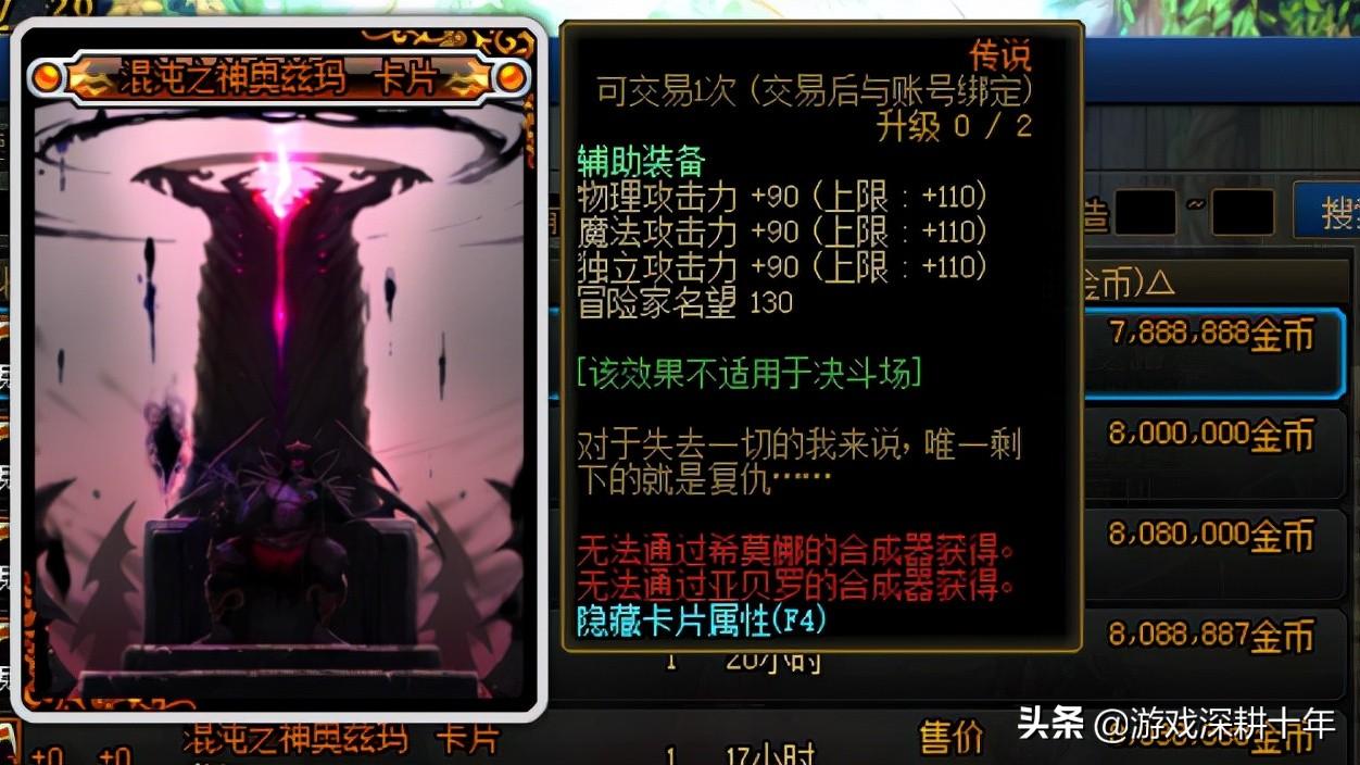 第六,卡片附魔,混沌之神奥兹玛可加110点,黑色恐怖阿斯罗特斯可加10点,