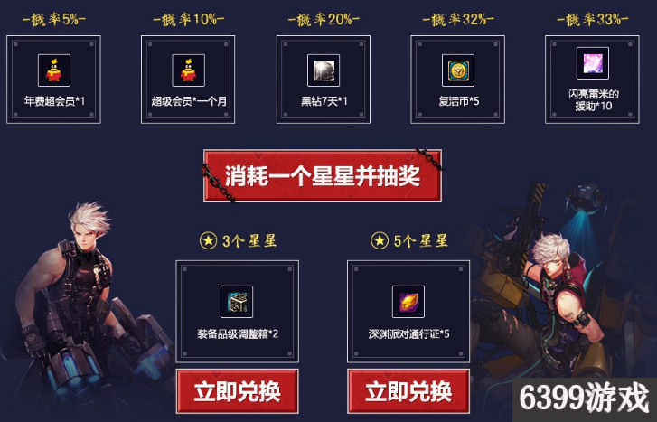 4、消耗一颗通过在线和开通所获得的星星即刻免费抽会员哦,消耗3个或6个星星可以兑换相应的礼包哦~,每份礼包单Q限5次