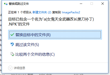 注意:游戏对应文件夹中只需要放入NPK格式的补丁文件,不要将效果图或其他文件夹也放入。