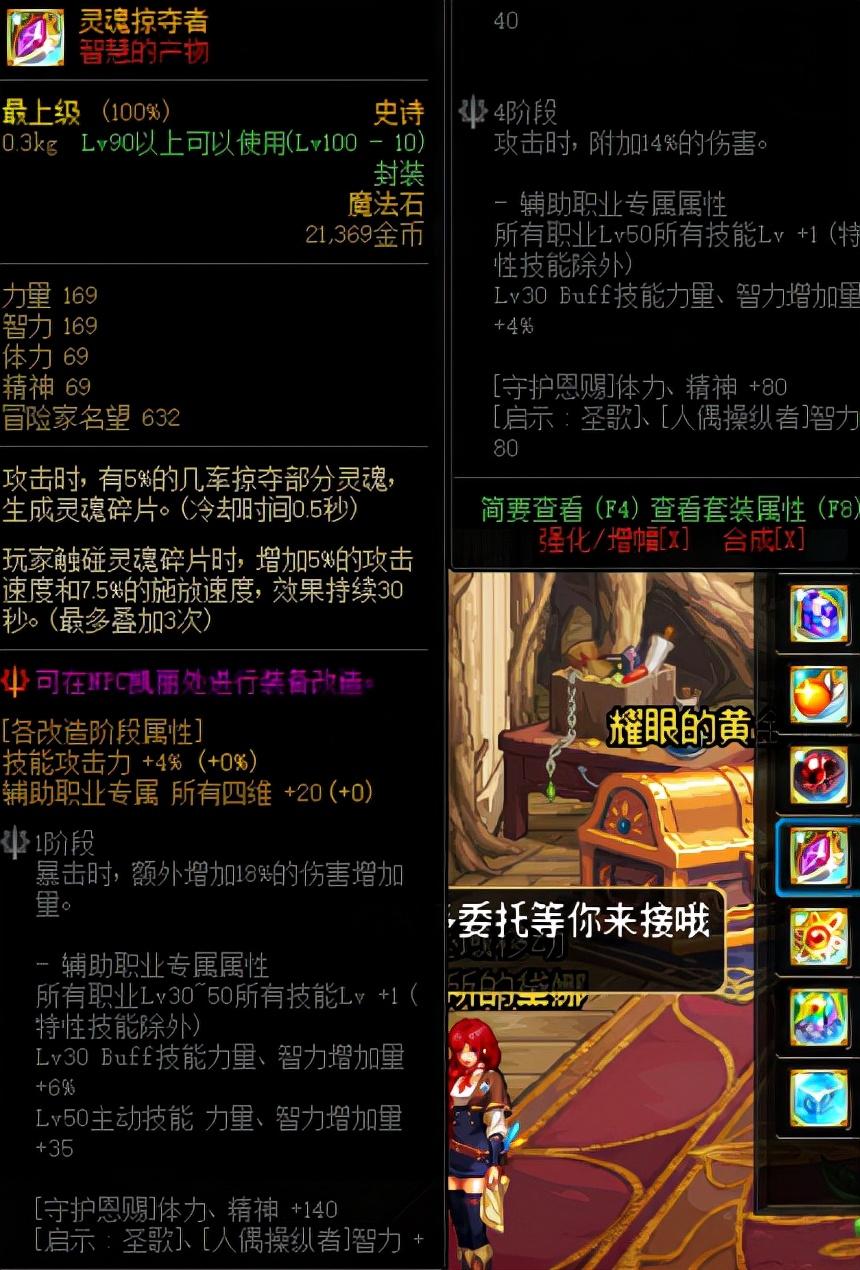 如果奶穿戴了改造4阶段的灵魂掠夺者,那么大可直接判断为大奶,满足所有副本所需。