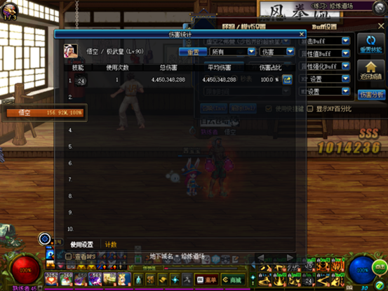 这是娘娘拳的伤害统计:约44.5亿的火拳,比圣耀低7亿伤害。测试结果也和娘娘拳的战斗力差距不大!可见极武皇玩家用战斗力来衡量伤害大体上是正确的!