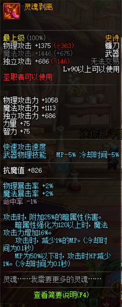 灵魂剥离完全可以与圣耀持平,25%的暗属性伤害,并且在120点暗强还有16%的魔法伤害,四叔四姨拥有一把绝对是变身全新职业,但是这一把武器这么强,药也需要很多~~一般人不敢带。