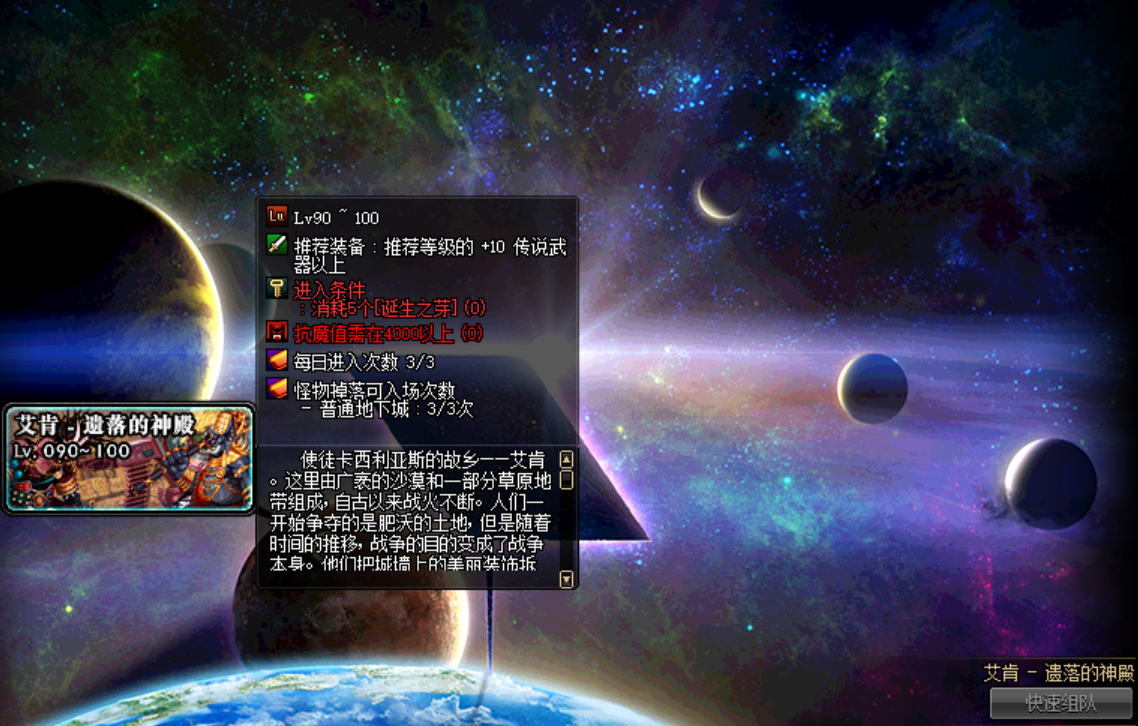 另外需要注意,这个副本只能是90级以上的角色才能进入,每次消耗8点PL,限定了复活币使用次数3次,无法使用人偶和支援兵,所以小号最好搞点装备再去。