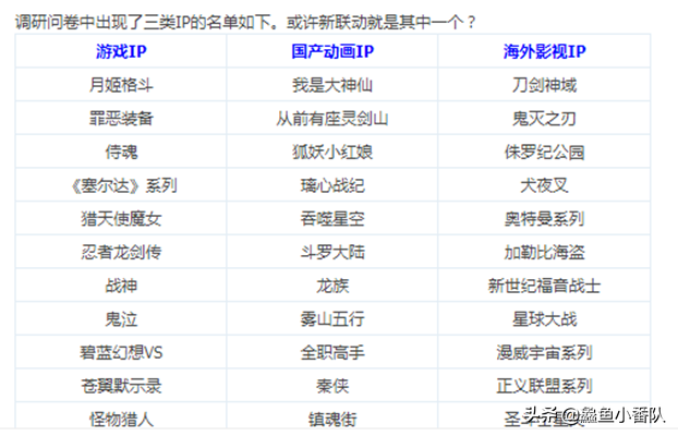 也有玩家表示:“年年都联动,年年联不动 ”。因为之前也出过类似的调研问卷,最后却不了了之。如果真的要联动,你更希望是哪个IP?
