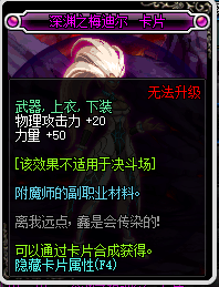 物理攻击力+20,力量+50的卡片,能给勇士们带来的提升是非常巨大的,深渊之梅迪尔卡片产出安图恩副本,价格约为5500w;