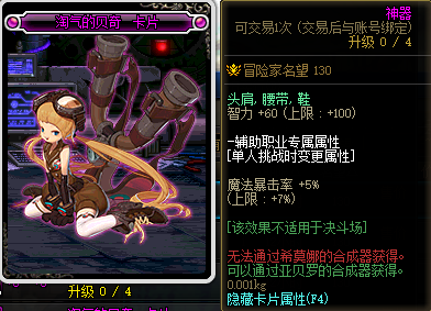 70点的力量加成,是物理固伤职业比较好的附魔卡片了吧,升级后可以达到75点的力量,比现在90版本最高的磁力恶魔升级后的65力量多10点,不过这一张卡片在韩服真便宜的,才360万金币不到,我们国服没有升级的马格内特都要1200万金币呢。附魔部位上下装,同类型的阿利斯是75点的智力。