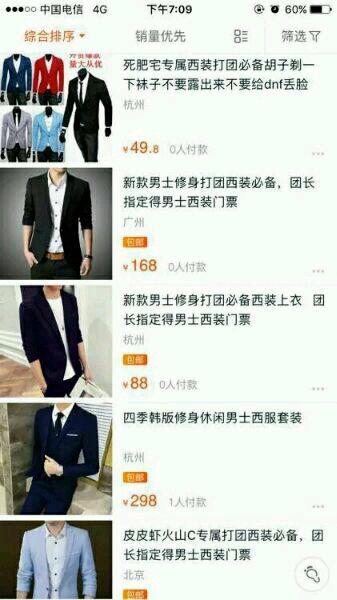 还有我们的某宝从来都是紧跟大众潮流,马上就推出来一系列DNF 玩家标配西服