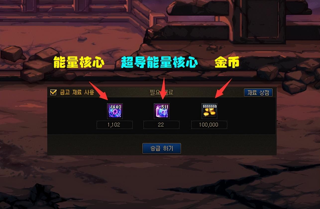 【宝石升级】总共分为高级、稀有、神器、传说攻4个等级,总共需要7993个能量核心和120个超导能量核心;