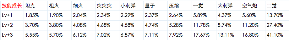 由于女大枪大技能伤害数据百分比独立1比1(比如空气炮34432%+344.32倍独立),小技能有几个好像不是1比1。