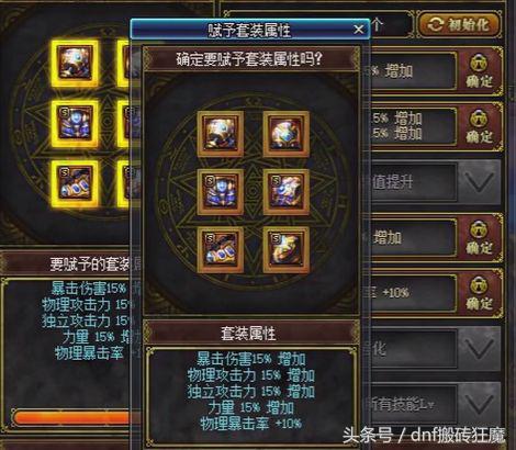 装备属性跟套装属性都是完美的了,当初本来想弄6件全部双物理攻击的,想法很美好,一个半月只凑到了3件,所以弄了一半属强 一半 物攻。花费周期,一个半月,一般来说要两个月,因为升级装备也要 塔玛尔的象征 直接爆出3星“灭”符合自己职业的轻甲啊 重甲啊 这些能用的很少,基本看脸。