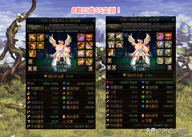 “银樰”也没有闲着,做起了巨龙SS装备,跟大硕来测试下提升,从为玩家探路!经过几个小时捣鼓,一张图出来了,8套巨龙光环对比,强弱一目了然。 巨龙分为5套词条增加,以及3套易伤,来供玩家进行选择。你会发现其中易伤套,傀儡和纯白是伤害最高的,且两个一模一样。不过,有些怪物不吃异常,会导致纯白光环套无法触发,摆明傀儡是最佳的。