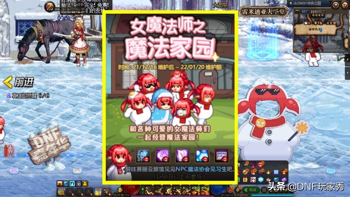 DNF12.16新版本内容全曝光:强者之路、魔界雪人的心意、女魔法师之魔法家园、嘉年华三重礼盒、F1天王赛专属称号、魔盒加入灿烂自选徽章!在这一系列的活动中,秀儿只推荐魔法家园活动,全职业像素头全面升级,可以获取新版像素头,兄弟们快来看一看,是不是你喜欢的“style”!