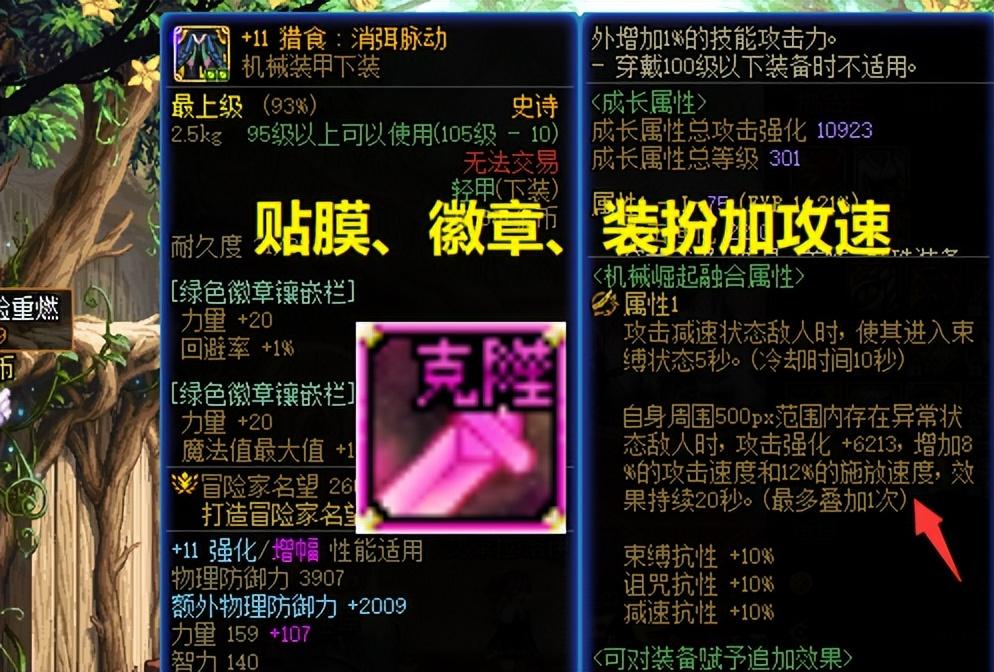 怎么办呢?获取攻速的几个途径有:换黄色攻速徽章、武器装扮(最新爆料了神器装扮)、上衣加攻速词条、以及最直接的防具贴膜!
