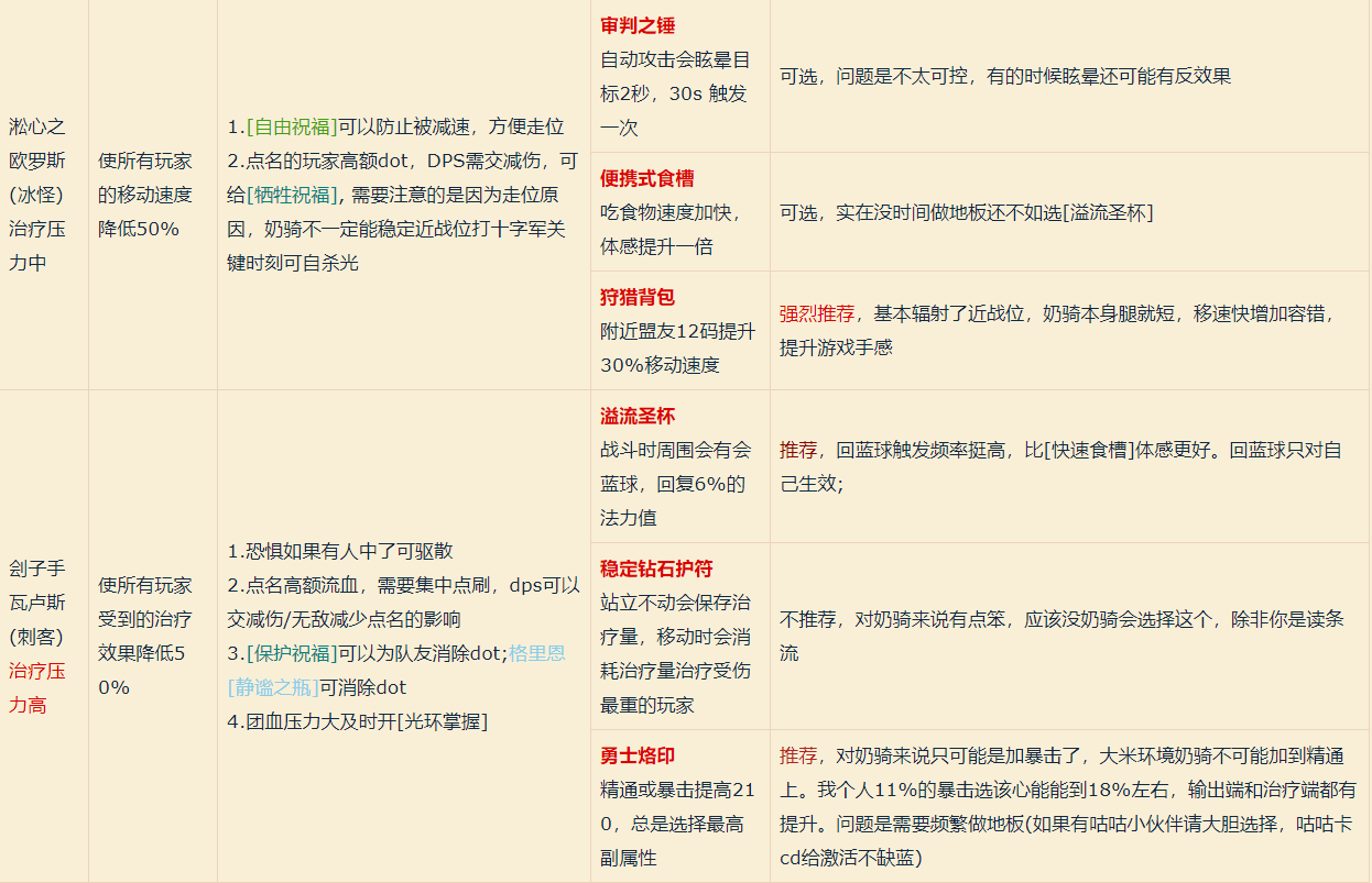 另外很多治疗压力都是dps不够导致的,奶骑在保证治疗的情况下多打输出让 boss/小怪 少放一轮技能也是变相的减少了治疗压力。