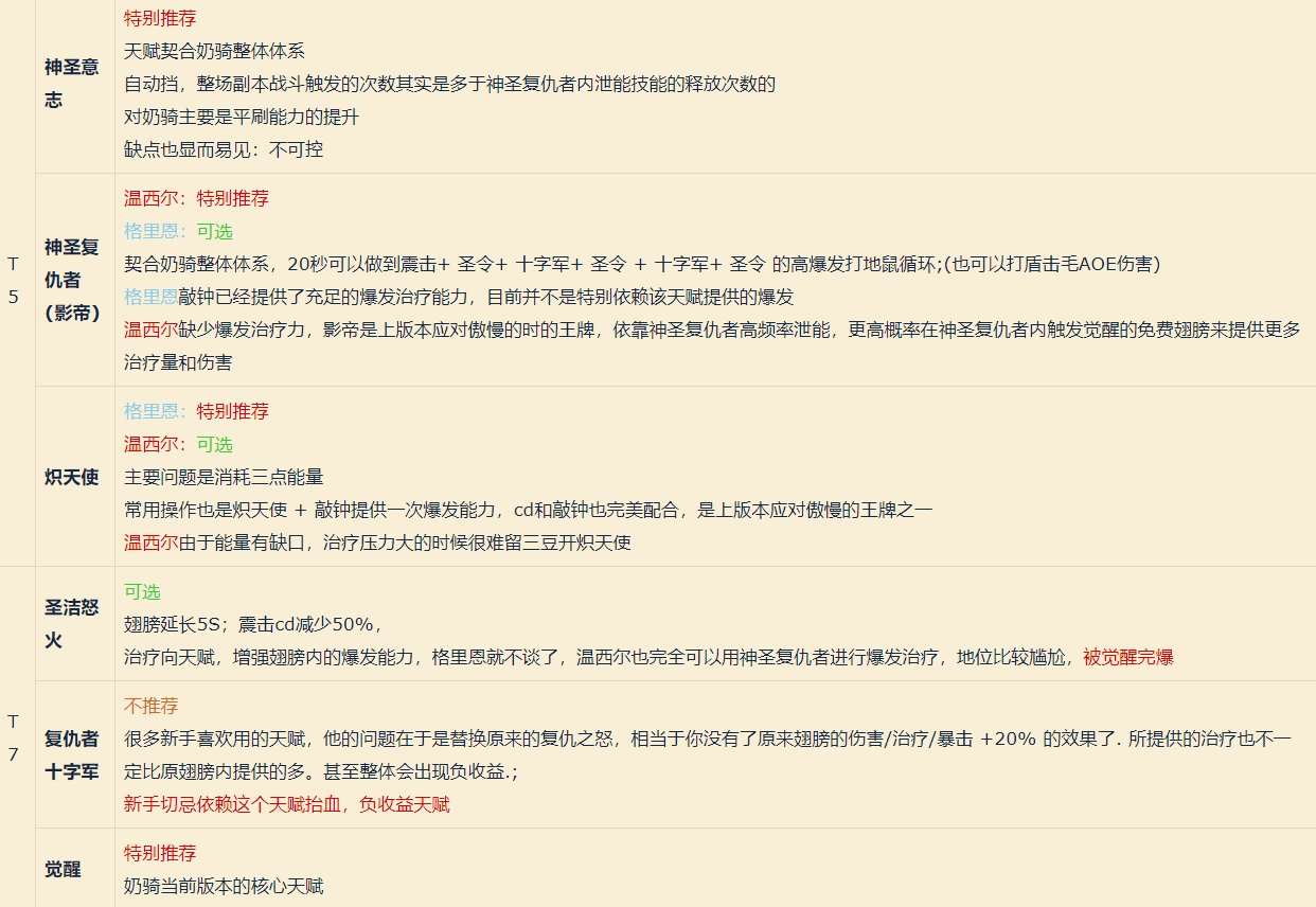无论温西尔还是格里恩,团本还是大秘境,奶骑当前版本的核心机制就是觉醒,觉醒为奶骑弥补了平刷的治疗和增强了平伤,奶骑没翅膀的圣令和有翅膀的圣令就像是两个技能。