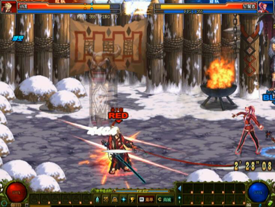 开局双方友好互打了几下,血量持平。然而剑魔远距离占优,还是先手到了白手,将其打了一套,伤害很足,此时白手的血量近半。