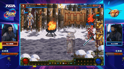 双方开局打的都稍有一些保守,包括上两局比较激进的剑魔。拉扯中白手选手率先地波击倒对手,经典的里鬼扯裂波压起身,打了一套连招,剑魔选手只剩下半血了。之后白手猛龙反身破军再次起手,将差距拉大。