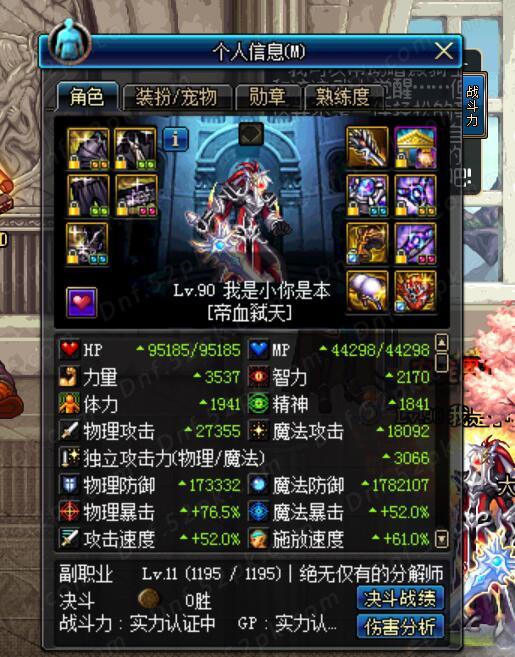 最后说一下附魔好了,红眼是固伤谨记,武器只附魔40独立,但是目前上衣下装的独立附魔天价,推荐大家附魔力量,根据自己财力选择,有钱的65.50力量,没钱的30力量,护肩腰带鞋子,有钱的直接全部国庆和新年套技能宝珠,没钱的头肩凯恩9暴击,腰带国庆,鞋子巨龙44独立,不懂得可以评论问我,这里篇幅限制了,首饰推荐大家冰暗附魔,没钱的附魔骷髅骑士10暗强9独立,有钱的20冰暗,这里特别提醒,不要附魔全属强18的!!!千万不要,至于右槽,如果不是石碑和海博伦毕业装,直接附魔12全属性心脏宝珠即可,如果是毕业装备,那15点全属强完美,左曹用安图妮可以兑换的红玉宝珠。耳环不是毕业不推荐附魔,毕业的英雄王和海博伦,直接附魔使徒制造者卢克暗/光。至于称号,春节套宠物,附魔,看个人财力,有钱的完美,没钱的暂时别动即可,慢慢搬砖都可以附魔。打红字增幅什么的完全是后期,且花费巨大,不建议新手玩,我的超大陆也是白板的,如图6
