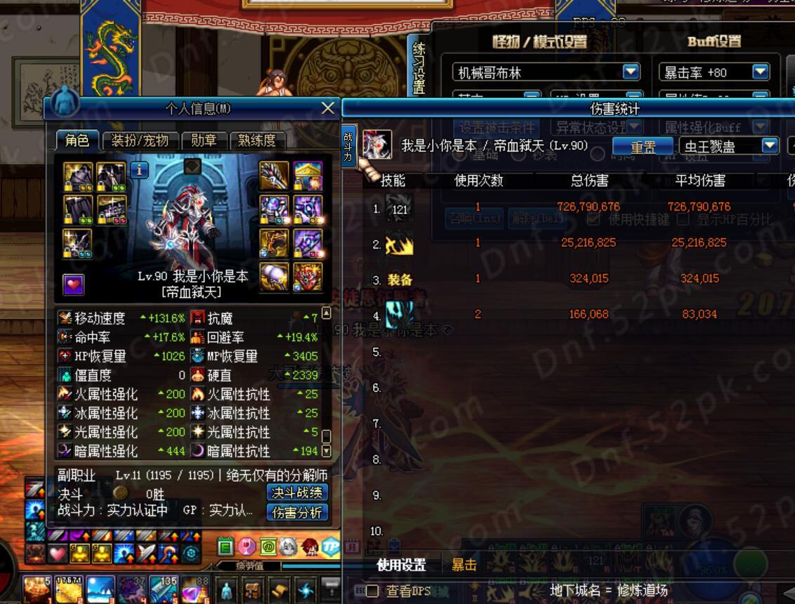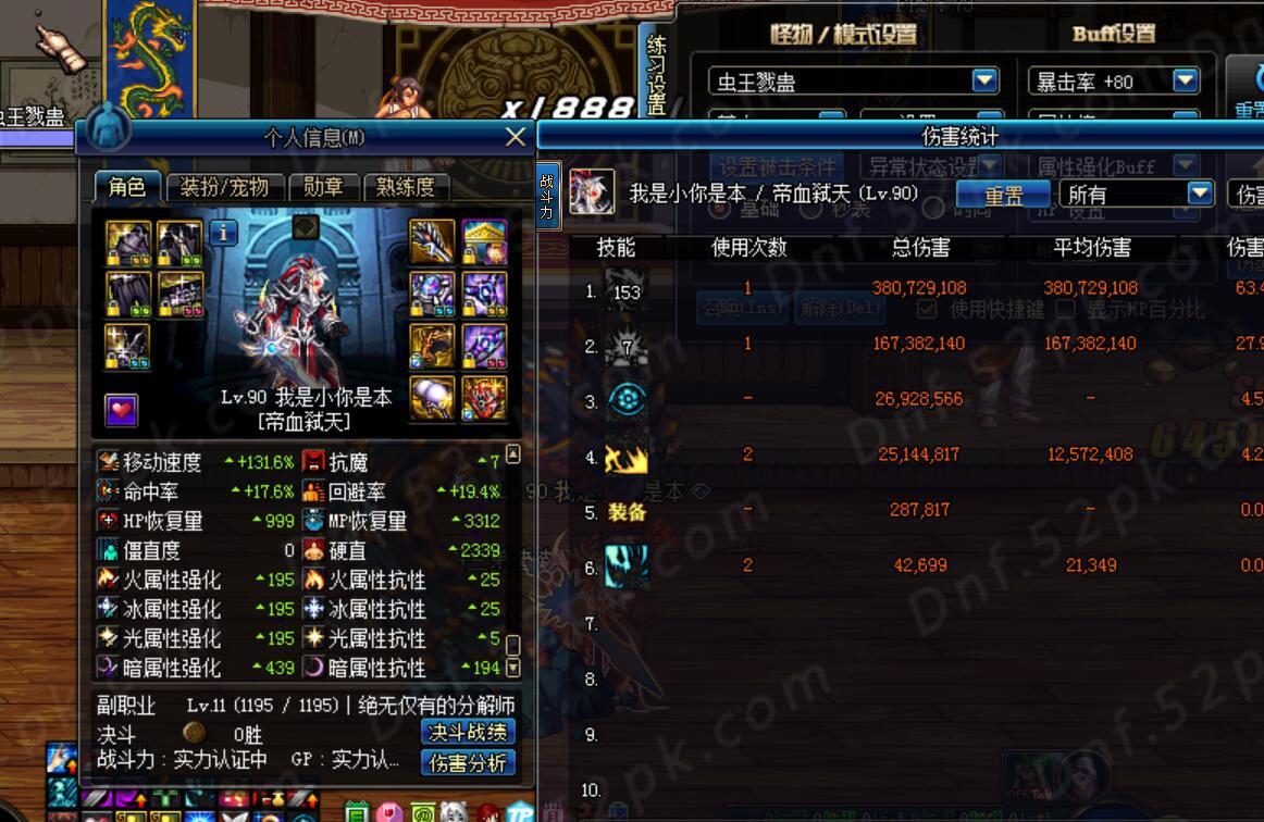 由于支点加75-85技能只打2觉伤害会引起很多人争议,所以主要测试2个技能:大蹦和2觉